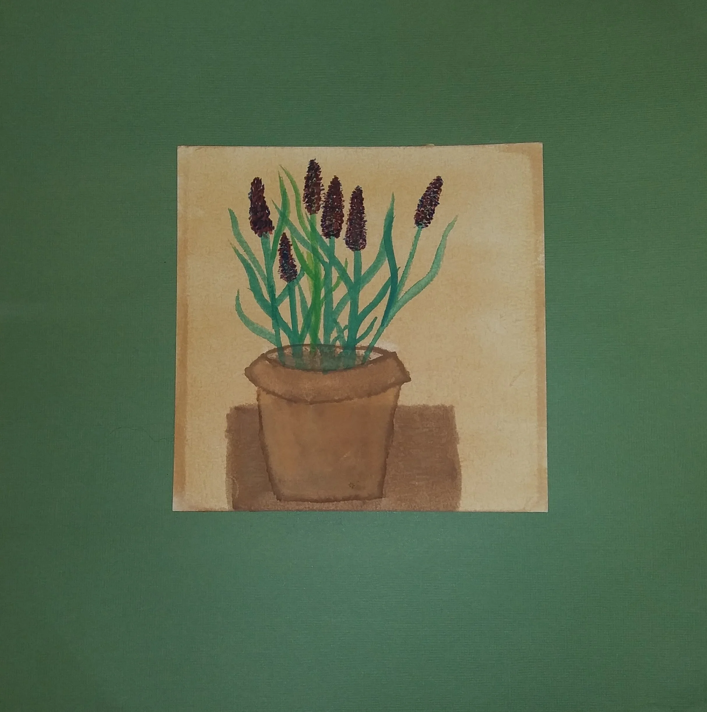 Water color on paper 12” x 12” WC 006-2019 "Tuscan Pottery and Lavender"